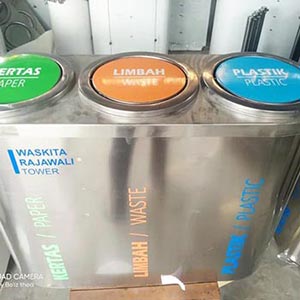 Kami dapat memproduksi tong sampah stainless, fibber dan Plat Besi custom sesuai permintaan anda, untuk konsultasi dan request desain bisa hubungi admin.